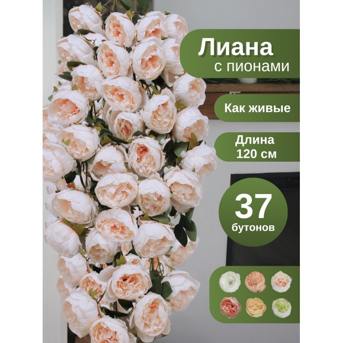 Цветы искуственные Пионы каскадные (37 штук, 120 см, цветок 10 см) нежно розовый контр. середина 265899