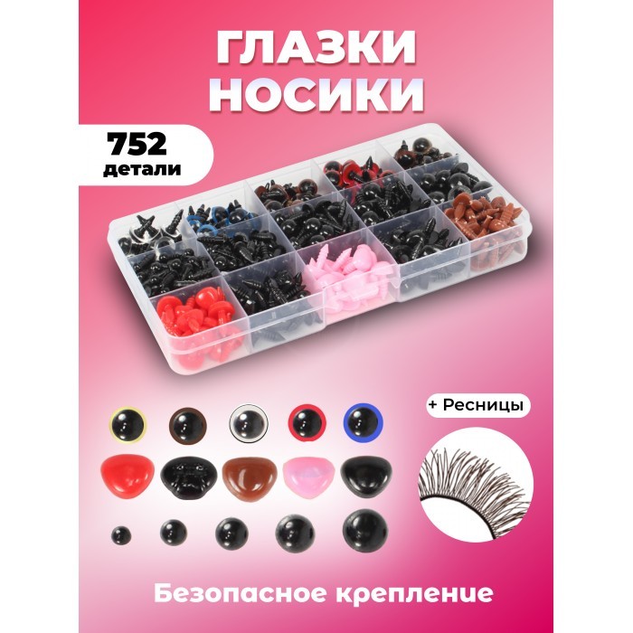 Глазки и носики винтовые для игрушек с фиксатором (376 штук/376 фиксаторов) 257290