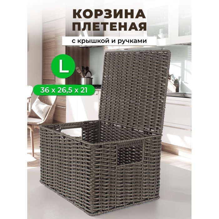 Корзина плетеная с/крыш L 360*260*200-mpl-fbo иск/ротанг, серый 265225