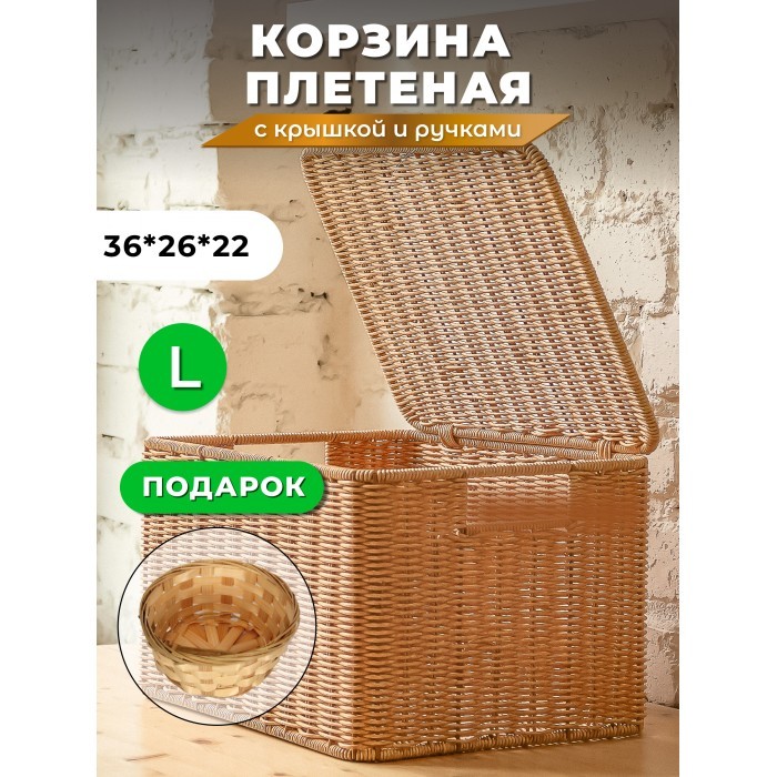 Корзина плетеная с/крыш L 360*260*200-mpl-fbo + салатник 16*7см иск/ротанг, песочный 261622