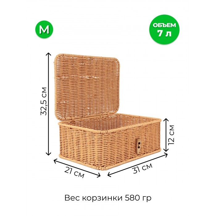 Корзина плетеная с/крыш Пуговка M 311*211*110-mpl-fbo иск/ротанг, песочный 265670