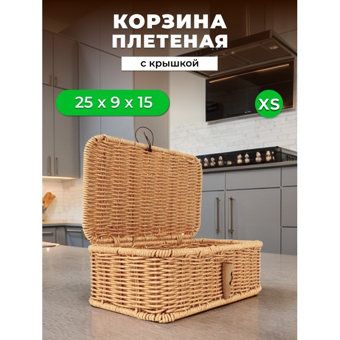 Корзина плетеная с/крыш Пуговка XS 250*150*90-mpl-fbo иск/ротанг, песочный 265672