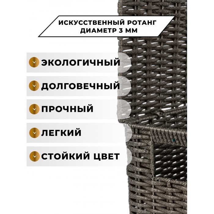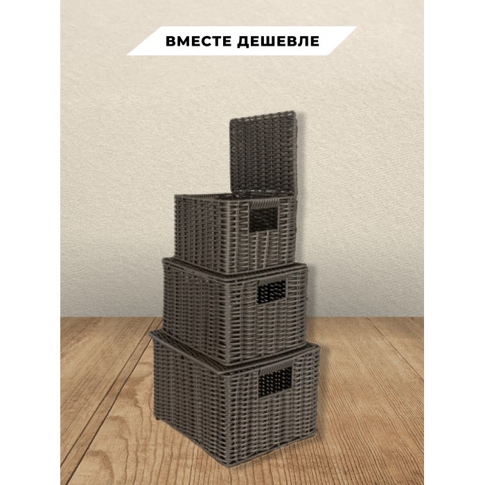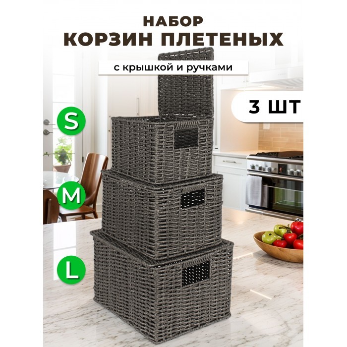 Корзина плетеная с/крыш КОМПЛЕКТ 3шт (S, M, L) + иск/ротанг, серый 265224
