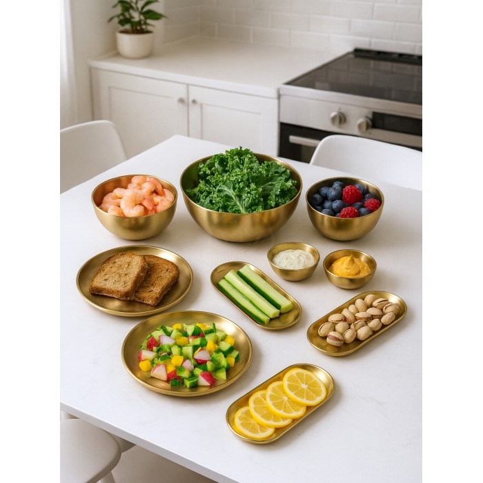 Набор Мисок из нержавеющей стали 9шт (15см- 2шт+20см-1шт+тарел 20см-2шт, бл.овал 18см-2шт, соус-2шт) золото 266206