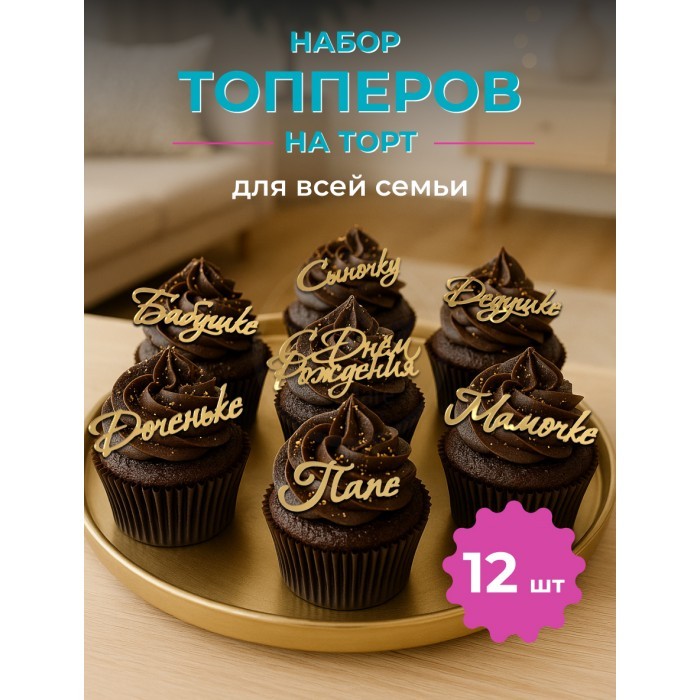 Топпер зеркальный Сднем рождения (6 персон), золото 266155