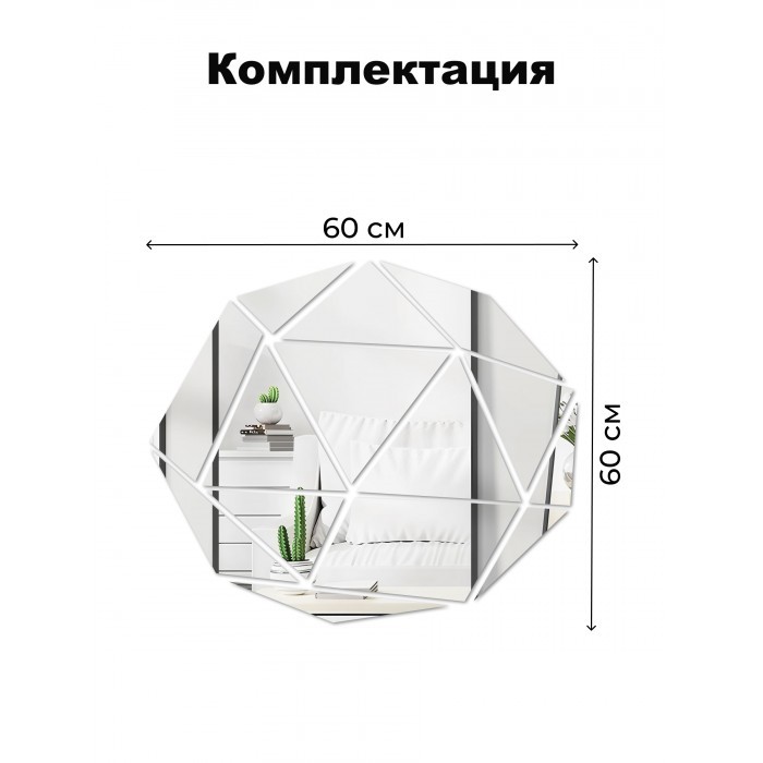 Интерьерные зеркальные наклейки Бриллиант (1 шт - 60*60 см) серебро 265972