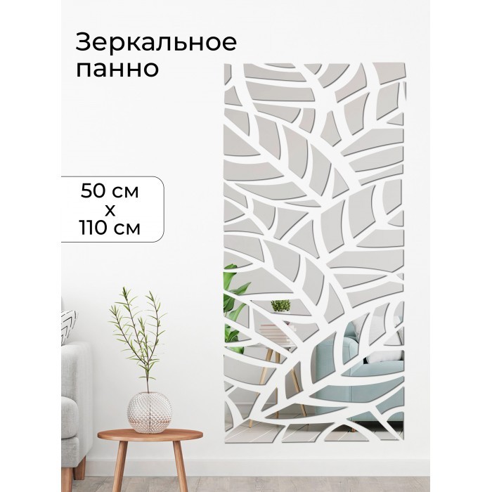 Интерьерные зеркальные наклейки Листья (110*50см ) серебро 265984