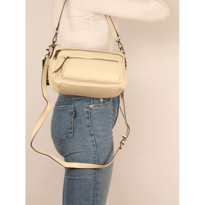 Сумка женская натуральная кожа GU 2066-2058, 1отд+еврокарман, плечевой ремень, молочный SALE 265753